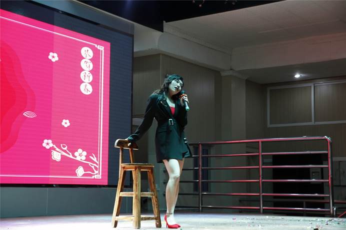 晚会以一场精彩的舞蹈串烧开始,学院研会的各位同学们在活泼的音乐中尽情释放自我,一曲《野狼disco》引来了大家的欢呼与掌声,使晚会的气氛逐渐升温。