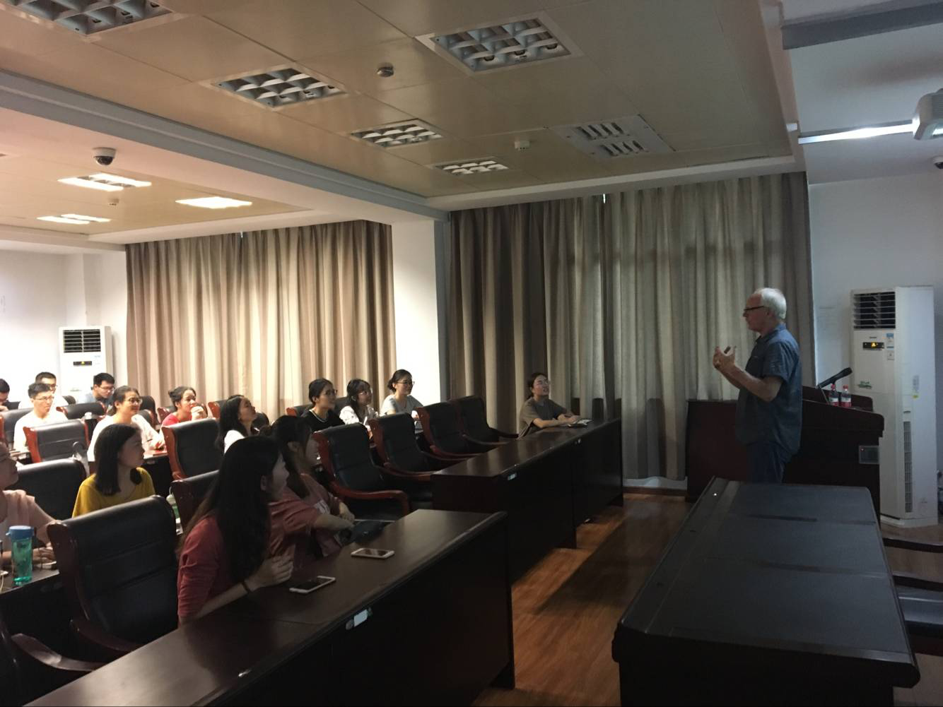 6月13日上午9:30,美国加州州立大学北岭分校新闻系终身教授,新闻学学士,艺术教育硕士,视觉传达艺术硕士David Blumenkrant教授在国家文化产业研究中心318多功能报告厅开展题为“Protection and Promotion of China's Intangible Cultural Heritage”的第162期“华大讲坛”讲座。