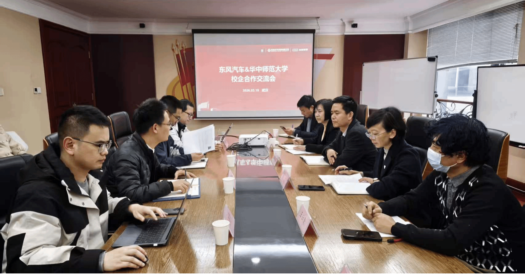3月19日下午,华中师范大学卓越工程师学院副院长王东、崔建群带队,联合物理学院分党委副书记马英及王俊、林海、潘勋勇等教师代表,赴东风汽车集团有限公司开展校企交流座谈,深化产教融合、共商卓越工程师联合培养事宜。东风汽车集团人力资源部人才处处长汪育全、科长孙桥奇,东风悦享科技有限公司副总经理刘尚龙、王文彬出席座谈。