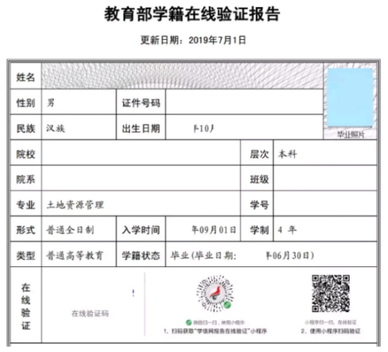 《中国高等教育学历认证报告》及《国外学历学位认证书》示例照片
