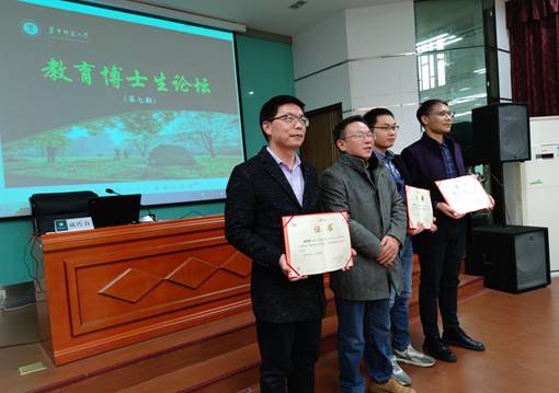 整场报告气氛热烈,报告结束后,同学们踊跃提问,与主讲人展开激烈讨论。杜时忠教授也对每位发言人进行点评,针对主题汇报提出建设性意见。在总结发言中,杜时忠教授对三位同学的主题汇报表示充分肯定,并为他们颁发荣誉证书。至此,华中师范大学第七届 “教育博士生学术论坛”圆满落幕。教育博士生论坛的持续举办,不仅有利于教育博士培养质量的提升,更为在校教育博士生搭建起高端交流平台。