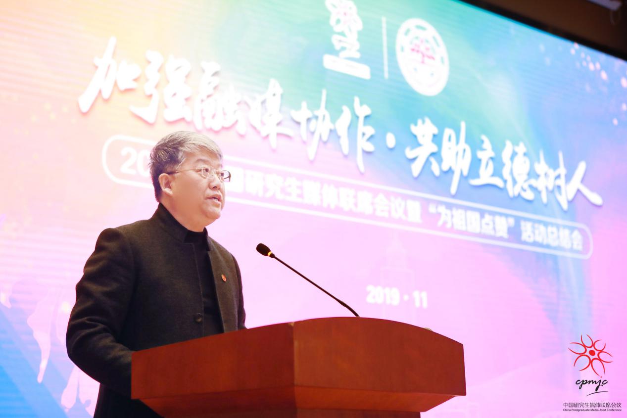 报告结束后,大会还举行了闭幕式颁奖活动。教育部学位与研究生教育发展中心主任助理兼研工处处长赵瑜对本次会议进行了总结,并发起“中国研究生媒体联席会议”的倡议和说明。闭幕式颁奖环节评出了优秀报告人奖、优秀媒体作品奖、优秀媒体嘉年华竞展奖和优秀媒体建设奖等奖项,获奖高校和个人依次上台领奖合影留念。最后,山东大学党委研究生工作部部长鲁统超致闭幕辞,2019年中国研究生媒体联席会议圆满闭幕。
