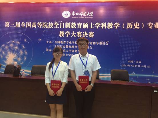 2017年7月29日至7月31日,由全国教育专业学位研究生教育指导委员会、全国历史教师教育专业委员会主办的第三届全国高等院校全日制教育硕士学科教学(历史)专业教学大赛决赛,在东北师范大学举行。来自东北师范大学、华中师范大学、陕西师范大学、华南师范大学等全国38所高等院校的74名选手参加了这次比赛。