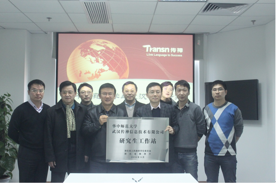 1月21日, 华中师范大学武汉传神信息技术有限公司研究生工作站,在武汉传神信息技术有限公司光谷软件园总部正式挂牌。华中师范大学研究生院李志明副院长同武汉传神信息技术有限公司副总经理付强先生,分别代表双方合作单位签署了《华中师范大学与武汉传神信息技术有限公司关于翻译硕士学位研究生专业实践协议书》等三项协议。李院长在签字仪式上对工作站设立的意义和合作方式做了说明,指出湖北省人民政府学位委员会和湖北省教育厅根据双方合作的基础,经过严格挑选,决定设立实习和实践工作站,以提高我校翻译专业研究生的实践能力,为专业硕士研究生培养打造一种有效的培养模式。传神公司付强副总经理对这种校企合作方式表示满意,表示积极为我校翻译专业研究生翻译实习和实践活动创造条件,提供良好的平台,进一步深化双方之间的友好合作。
