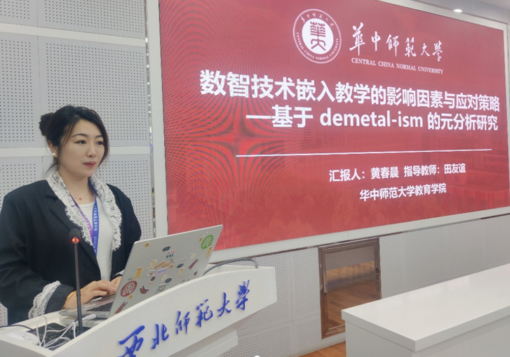 我校博士生黄春晨应邀在分论坛一作了题为《数智技术嵌入教学的影响因素与应对策略—基于demetal-ism的元分析研究》的报告。报告中,她基于目前研究现状,运用demetal-ism的元分析方法分析了数智技术嵌入教学的影响因素,并根据研究结果从技术、教学、知识、社会支持等四个方面入手,探讨了数智技术嵌入教学的实践路径。