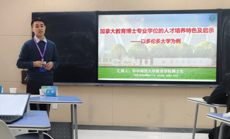 我校博士生周恺应邀在分论坛五作了题为《加拿大教育博士专业学位的人才培养特色及启示——以多伦多大学为例》的报告。报告介绍了加拿大教育博士专业学位教育的发展历程,以加拿大多伦多大学为例具体介绍了加拿大教育博士的培养模式,总结了该模式对我国的借鉴意义。