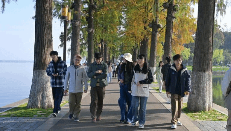 东湖的优美景色为深入的导学交流营造了良好氛围。师生们沿湖畔漫步,交流内容广泛,涵盖了学术研究、论文写作、生活困惑与职业规划等多个层面。在交流中,老师们针对学生关切给予了具体指导。面对学生在定量方法上的学习难点,吕方老师提出了将AI工具转化为学习助手的实用建议;李钧鹏老师则聚焦学生身心健康,分享了个人的压力管理经验,并倡导健康生活方式等。